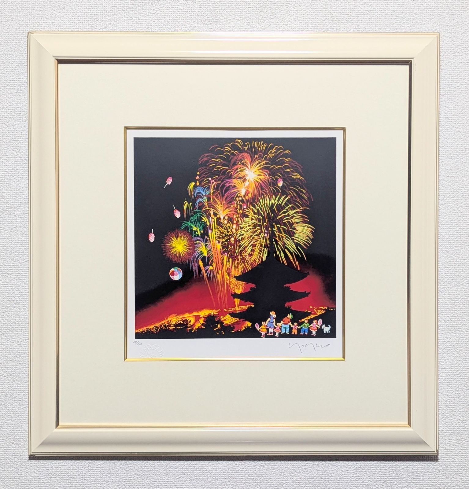 | 商品の特徴 | 真作】【直筆サイン】ヒロ・ヤマガタ「ホテル・ド・パリ」【シルク。真作保証 ヒロ・ヤマガタ 「パリスオーケストラ」 シルクスクリーン。ヒロ・ヤマガタ シルクスクリーン 直筆サイン エディション有り ヒロ。※保存用箱が付属されません。発送は丁寧に梱包させて頂きます。パリの賑わいを描いたカラフルなシルクスクリーン作品です。■状態古い額ですが特に目立つキズや汚れはございません。作品に目立ったキズや汚れはございません。■作品説明技法 シルクスクリーン限定部数 XII/CCL(12/250)サイン 直筆サイン ■サイズ画寸 44×56cm額寸 86×95.4×4.5cm■付属品アクリル板使用額取付用フック付き■配送方法ビニール素材の梱包材を使用し、丁寧に行います。作品は真作でございます。万が一真作ではなかった場合、全額返金いたします。額も含めて状態の良い作品を出品しております。よければフォローして頂けると嬉しいです!安全を心がけてお届けさせていただきます。#ヤマガタその他作品はこちら。真作保証 ヒロ・ヤマガタ 「パリスオーケストラ」 シルクスクリーン。。海野光弘 祭の宵 木版画。Mamama★カトラン★赤いテーブルの上のシクラメンと柿★リトグラフ★美品。江口寿史 版画「rouge」 Tonari no Zingaro。真作保証 秋山巌「青い山」木版画 17/150 直筆サイン 額装 山頭火。大正ロマン - DEC 竹久夢二 冬「雪の風」 ED 262 直筆サイン。牧野宗則「月への小道」木版画 1994年制作 直筆サイン入り 額縁入り 限定品。ミッシェル・バテュ フォーシーズン冬 シルクスクリーン 大判 50/100。ポール・デルヴォー『街のそばで』リトグラフ 1972年 額装 街の近く 洗濯船 | ||